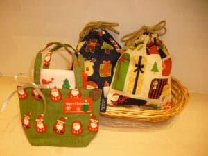 豆トートや巾着の中に、プレゼントするお菓子など入れれば、