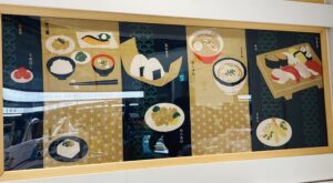 「てぬぐい本」とは、てぬぐいを本のように折り畳み、とじ紐で綴じたもの。とじ紐をほどくと、一枚のてぬぐいになり、一幅の絵になります。もちろん、てぬぐいとしてご利用いただけます!
