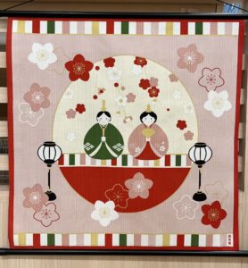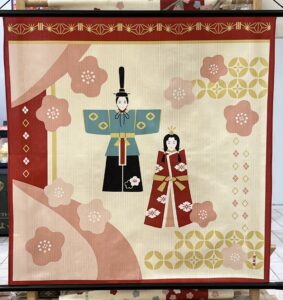 お雛様をモチーフにした絵てぬぐいは、飾るだけでお部屋がぱっと華やかに。